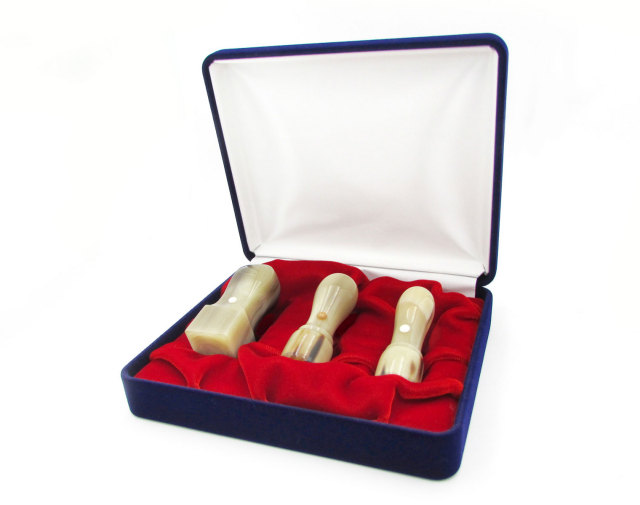 TOP 法人印鑑2本・3本セット 牛角牛角(色) 牛角(色)法人印3本セット 角印+役職印+銀行印 価格: ¥189,310 (税込) ~ ¥193,930 (税込) 販売期間: サイズ: 選択してください (1)角印21mm+(2)役職印18mm+(3)銀行印16.5mm (1)角印24mm+(2)役職印18mm+(3)銀行印16.5mm 価格と在庫を一覧で確認する 価格: - 法人名・団体名: 「印」「之印」は文字数により当店にて配置します。法人名のみご記入ください。 (1)角印 書体: アルファベット表記の社名の場合はヨコ彫がおすすめです。 選択してください 楷書体(タテ彫) 楷書体(ヨコ彫) 古印体(タテ彫) 古印体(ヨコ彫) 隷書体(タテ彫) 隷書体(ヨコ彫) 太篆書体(タテ彫) 太篆書体(ヨコ彫) 細篆書体(タテ彫) 細篆書体(ヨコ彫) 印相体(タテ彫) 印相体(ヨコ彫) (2)役職印 書体: 選択してください 古印体 隷書体 篆書体 印相体 外:篆書体/内:印相体 (2)役職印 内円彫刻内容(役職名): 選択してください 代表取締役印 代表者印 代表之印 代表社員之印 銀行之印 その他(下に記入) (2)内円でその他を選択された場合: 「印」「之印」まで記入してください。 (3)役職印 書体: 選択してください 古印体 隷書体 篆書体 印相体 外:篆書体/内:印相体 (3)役職印 内円彫刻内容(役職名): 選択してください 代表取締役印 代表者印 代表之印 代表社員之印 銀行之印 その他(下に記入) (3)内円でその他を選択された場合: 印面プレビュー: 選択してください 希望しない(お急ぎの場合はこちら) 希望する(発送が+1営業日程度延びます) 旧字(特殊文字)コード: 備考: 数量: セット 在庫 2~5営業日で発送 サイズ価格(1)角印21mm+(2)役職印18mm+(3)銀行印16.5mm¥189,310(税込)(1)角印24mm+(2)役職印18mm+(3)銀行印16.5mm¥193,930(税込) 返品についての詳細はこちら 関連商品 牛角(色)認印・銀行印【姓 または 名のみ】 ¥14,300(税込) ~ 商品を見る 牛角(色)実印【フルネーム印鑑】 ¥31,460(税込) ~ 商品を見る 牛角(色)2本セット 実印+銀行印・認印 ¥47,740(税込) ~ 商品を見る 牛角(色)3本セット 実印+銀行印+認印 ¥64,130(税込) ~ 商品を見る 牛角(色)法人用 役職印 ¥58,960(税込) ~ 商品を見る 牛角(色)法人用 角印 ¥58,960(税込) ~ 商品を見る 牛角(色)法人印2本セット 角印+役職印 ¥123,200(税込) ~ 商品を見る