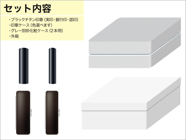 チタン印章を鏡面ブラックに仕上げたエレガントなブラックチタン。イオンプレーティング加工で鏡面加工を表現しているため、簡単に剥げたりしません。