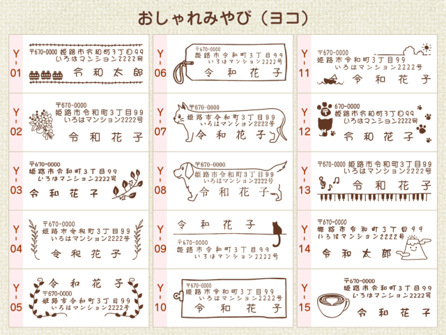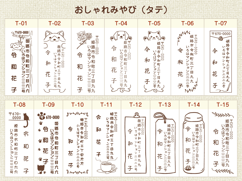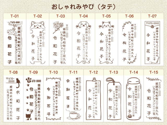 TOP ゴム印かわいい住所印 おしゃれみやび かわいい便利な住所ゴム印 価格: ¥3,980 (税込) 販売期間: デザイン番号: 選択してください タテT-01(さる) タテT-02(コーギー) タテT-03(ふくろう) タテT-04(犬) タテT-05(猫) タテT-06(草) タテT-07(手紙) タテT-08(黒猫) タテT-09(黒猫リボン) タテT-10(ツタ) タテT-11(コーヒー) タテT-12(クリップ) タテT-13(タグ) タテT-14(ビン) タテT-15(植物) ヨコY-01(電車) ヨコY-02(花束) ヨコY-03(南天) ヨコY-04(植物) ヨコY-05(ツタ) ヨコY-06(タグ) ヨコY-07(猫) ヨコY-08(犬) ヨコY-09(黒猫) ヨコY-10(クリップ) ヨコY-11(ヨット) ヨコY-12(黒猫リボン) ヨコY-13(ピアノ) ヨコY-14(富士山) ヨコY-15(コーヒー) 書体: 選択してください (1)明朝体 (2)楷書体 (3)行書体 (4)隷書体 (5)流隷体 (6)丸ゴシック体 (7)れいしっく体 (8)細ポップ体 (9)まるもじ体 (10)あや体 (11)なごみポップ体 郵便番号: 住所1: ご記入いただいた住所をそのまま作成します。都道府県や字の有無など、間違いのないようにご記入ください。 住所2: マンション名等があればご記入ください。2行目不要の場合は空白で。 名前: 作成するお名前をご記入ください。 旧字(特殊文字)コード: ページ下部に案内があります 印面プレビュー: 選択してください 希望しない(お急ぎの場合はこちら) 希望する(発送が+1営業日程度延びます) 数量: 個 在庫 2~5営業日で発送 返品についての詳細はこちら 画像クリックで拡大(別ウインドウで開きます) 画像クリックで拡大(別ウインドウで開きます) 画像クリックで拡大(別ウインドウで開きます) 商品サイズ ゴム印面サイズ:(住所2行の場合)約23×65mm (住所1行の場合)約20×65mm 持ち手:木 関連商品 プチみやび 小さくかわいい住所ゴム印 絵手紙にぴったり! ¥3,600(税込) 商品を見る